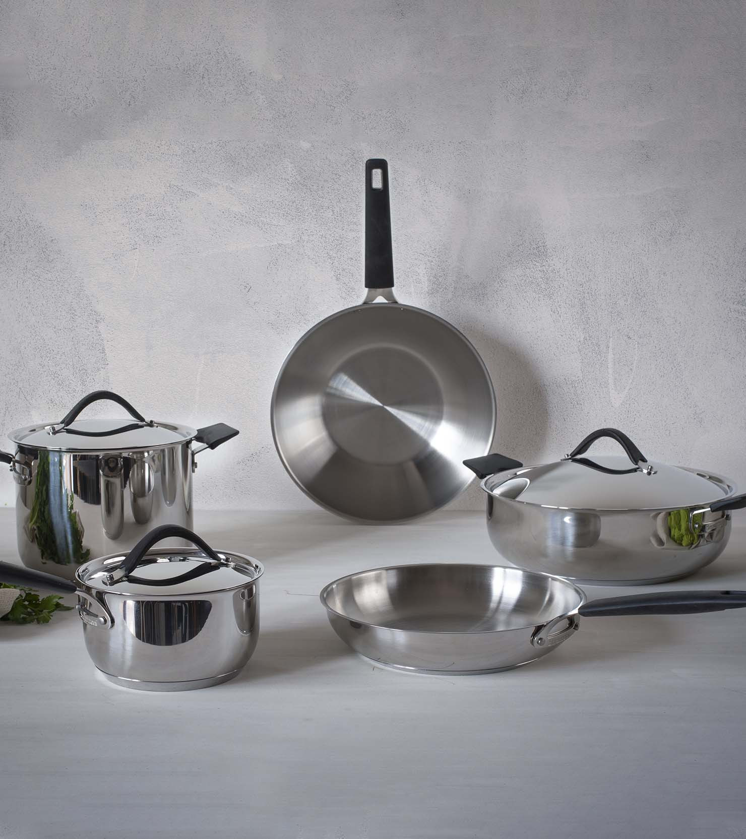 Matching the aluminium version of the same name, the 33 Carati stainless steel line is a jewel in the kitchen. The low casserole, enhanced by ergonomic silicone handles, is the ideal cooking tool for cooking risottos, roasts or simple vegetables. Suitable for all hobs, including induction. Lid sold separately.